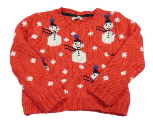 Červený vlnený sveter so sněhuláky Next