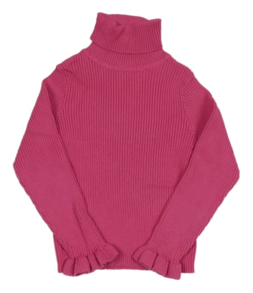 Tmavoružový rebrovaný svetrový rolák s volánikmi Matalan