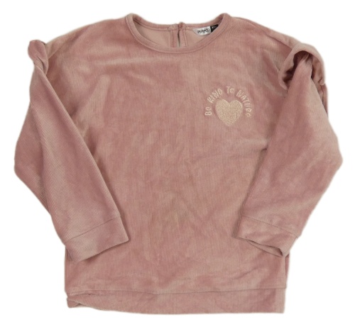 Svetloružová zamatová rebrovaná mikina so srdiečkom a volánikmi Pep&Co