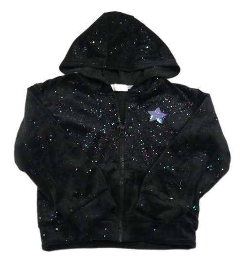 Čierna trblietavá zamatová prepínaci mikina s hviezdou a kapucňou Primark