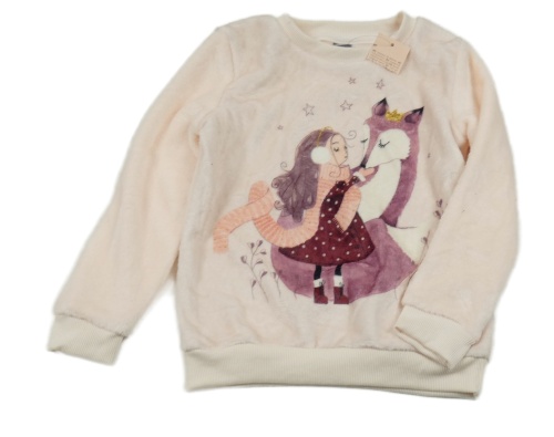 Nové - Svetloružová chlpatá mikina s dívkou a líškou Pep&Co