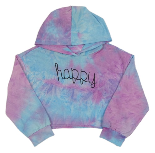 Tmavorůžovo-modrá batikovaná crop mikina s nápisom a kapucňou Shein