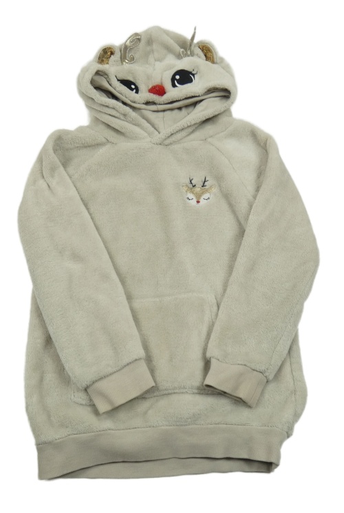 Světlešedobéžová plyšová dlhá mikina so sobom a vreckom a kapucňou H&M