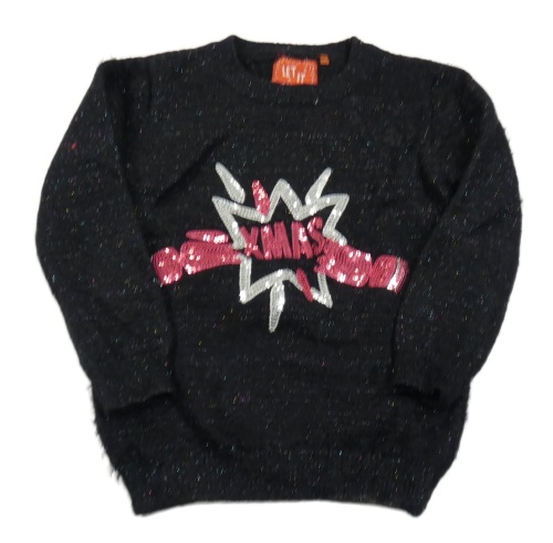 Čierny trblietavý sveter s nápisem z flitrů Tu