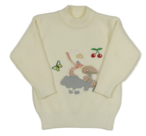 Smotanový svetrový rolák so zajačikom a třešničkami a motýlkom