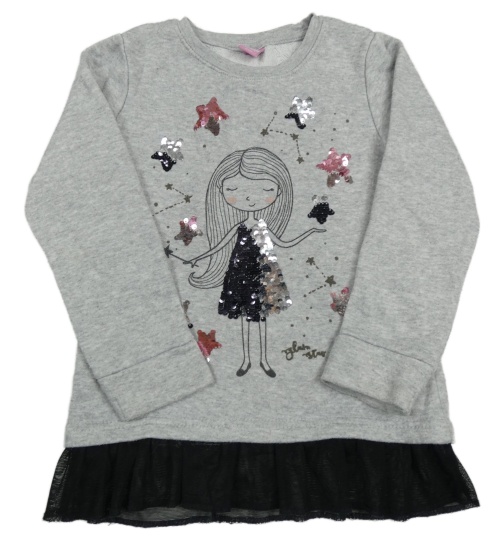 Sivá melírovaná mikina s divkou a hvězdami z překlápěcích flitrů Dopodopo