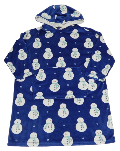 Tmavmodrá plyšová oversize mikina so sněhuláky a kapucňou