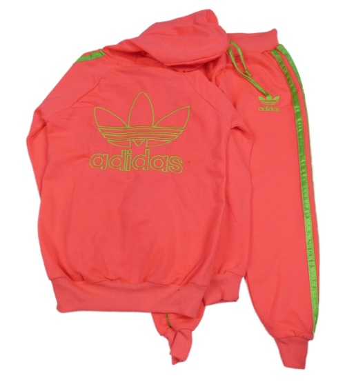 2set - Neonově růžová tepláková souprava s kapucňou a logem Adidas
