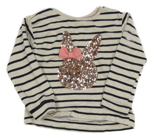 Béžovo-čierna pruhovaná mikina s králíkem z flitrů H&M