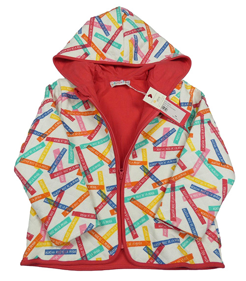 Nové - Bielo-farebná prešívaná podšitá prepínaci mikina s nápismi a kapucňou