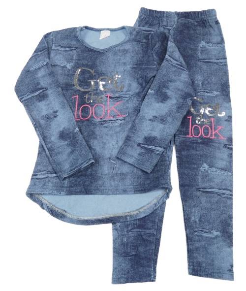 2Set - Modrá silnější mikina riflového vzhledu s nápismi a flitry + teplákové legíny