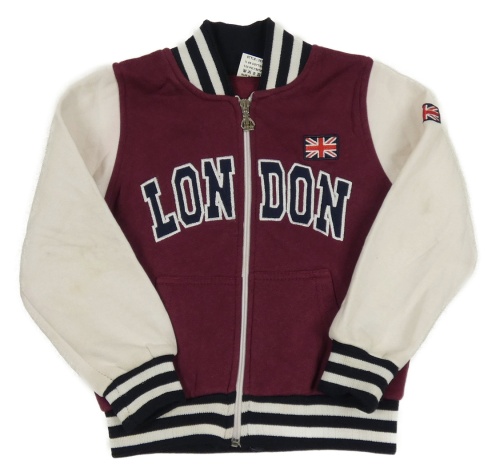• Vínovo-smotanová prepínaci tepláková mikina s nápisom a vlajkou a pruhmi