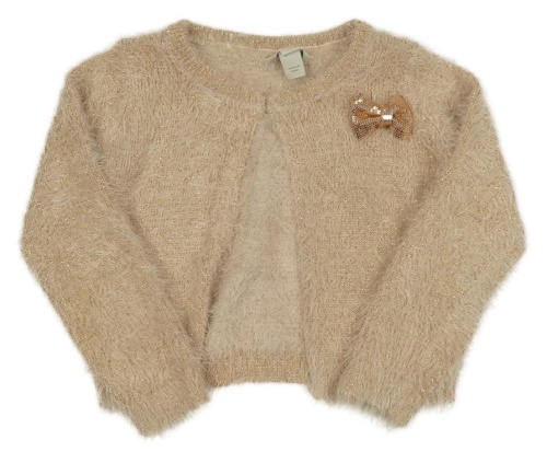 Pudrovo-zlaté trblietavé svetrové chlpaté bolerko s mašlou Monsoon