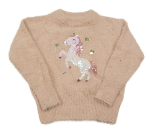 Staroružový chlpatý sveter s jednorožcem z flitrů C&A