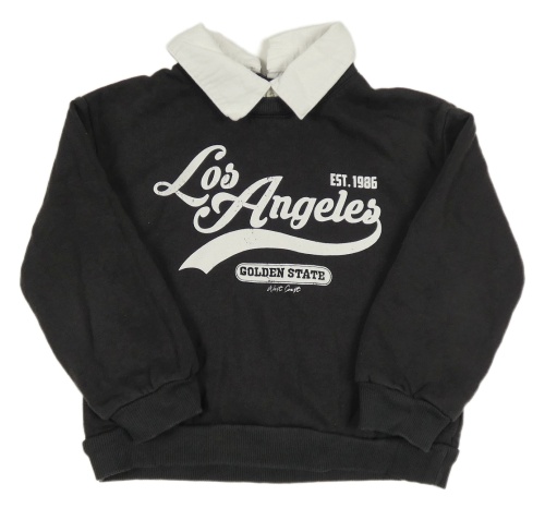 Antracitová mikina s nápisom a košeľovým golierom Tu