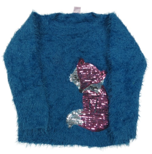 Petrolejový chlpatý sveter s liškou z flitrů Kiki&Koko