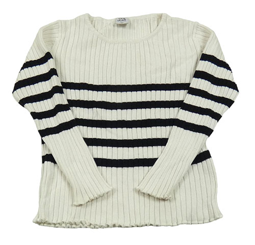 Smetanovo-čierny rebrovaný sveter s pruhmi Kiki&Koko