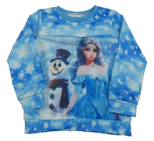 Modrá vzorovaná mikina s princeznou a sněhulákem