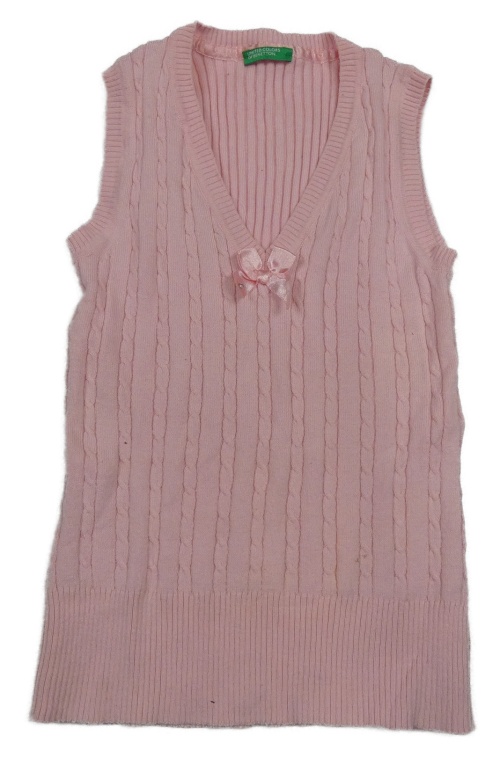 Svetloružová vzorovaná svetrová vesta s mašličkou Benetton