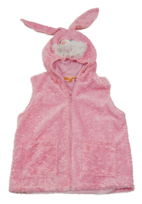 Ružová chlpatá podšitá vesta s kapucí - králik