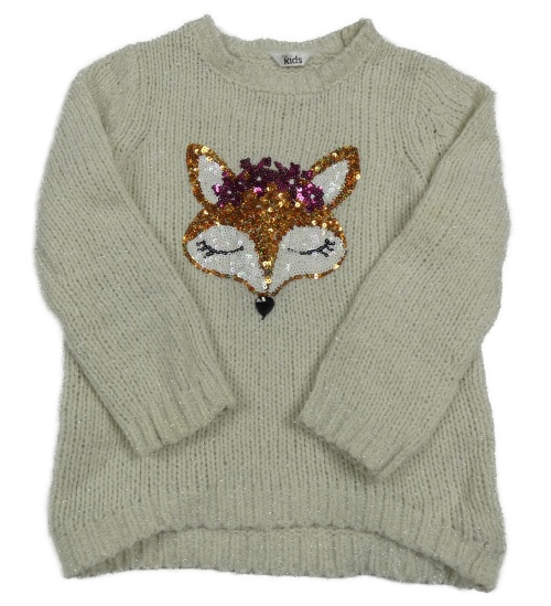 Smetano-strieborný melírovaný sveter s liškou z flitrů M&Co