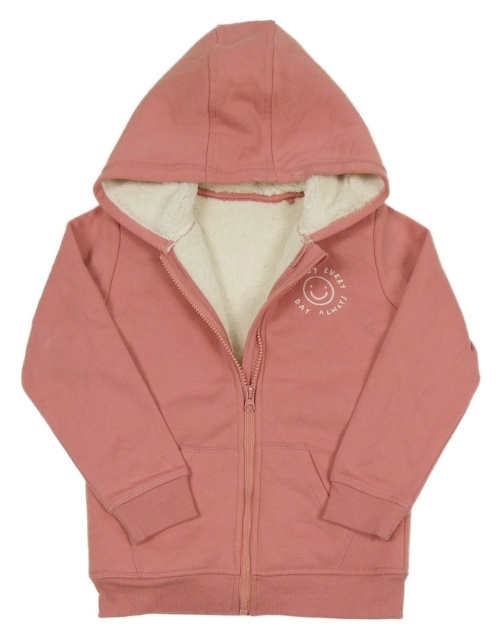 Ružová prepínaci zateplená mikina so smajlíkom a nápismi a kapucňou George