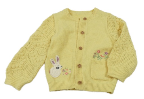 Žltý prepínaci sveter s králikom a kvetmi Nutmeg