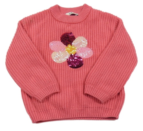 Tmavoružový sveter s květinou z překlápěcích flitrů C&A
