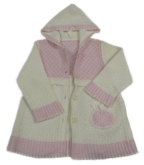 Smetanovo-svetloružový melírovaný vzorovaný prepínaci sveter s kapucňou
