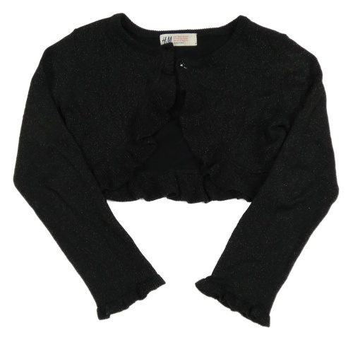 Černé melírované propínací svetrové bolérko s volánikmi a trblietkami H&M