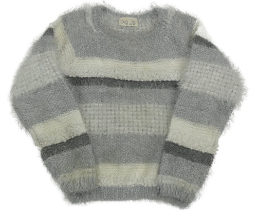 Sivo-biely pruhovaný trblietavý chlpatý sveter OVS