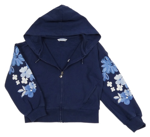 Tmavomodrá prepínaci crop mikina s kvetmi a kapucňou mayoral