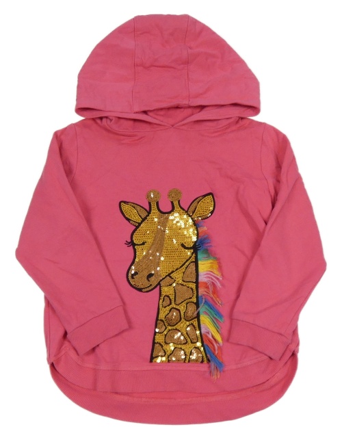 Ružová mikina s žirafou z flitrů a kapucňou Bluezoo