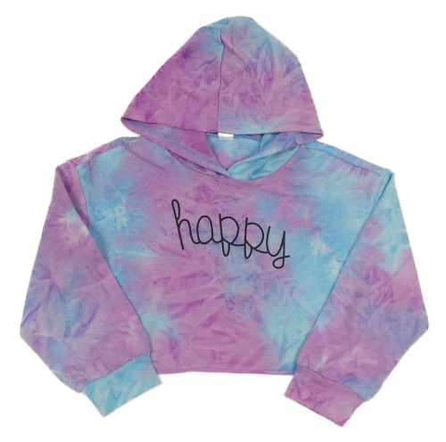 Světlemodro-fialová batikovaná crop mikina s nápisom a kapucňou Shein