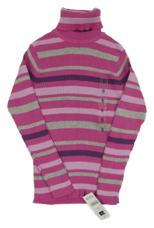 Nové - Ružovo-sivý pruhovaný rebrovaný sveter s rolákom Dunnes