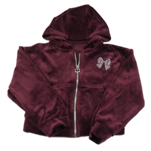 Slivková zamatová prepínaci crop mikina s mašličkou a kapucňou Nutmeg