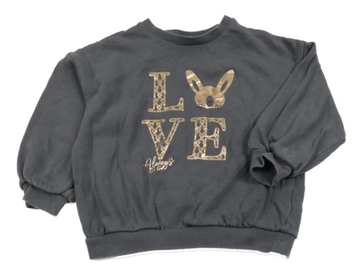 Sivá oversize mikina so zajačikom a nápisom Next