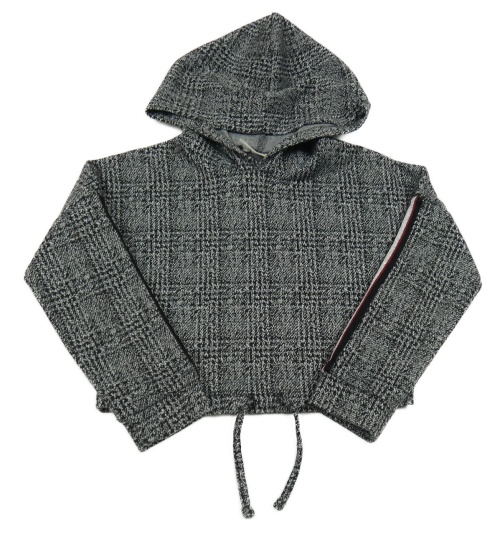 Čierno-bílo/světlešedá kockovaná vzorovaná melírovaná úpletová crop mikina s pruhmi a kapucňou Matalan