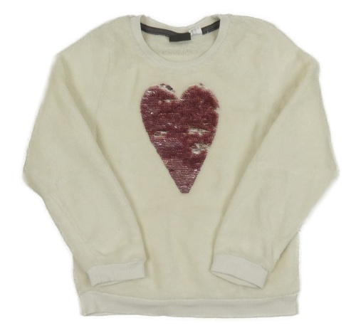 Biela chlpatá mikina so srdcem z flitrů Lupilu