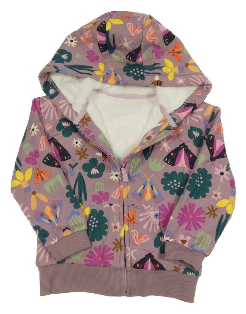 Pudrově fialová kvetovaná prepínaci zateplená mikina s kapucňou Nutmeg