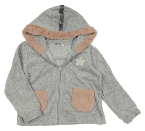 Sivá zamatová prepínaci mikina s kožúškom a kapucňou Sarahanda