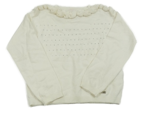 Smotanový úpletový sveter s kamienkami a volánikmi