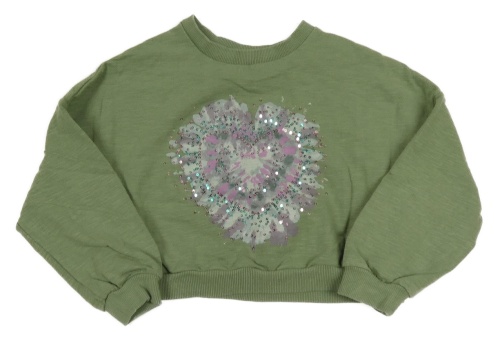 Khaki crop mikina s batikovaným srdcem s flitrami Next