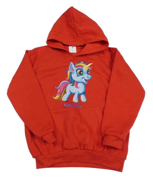 Červená mikina s jednorožcom a kapucňou