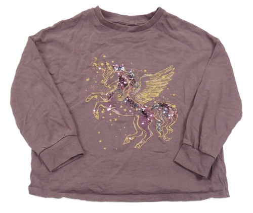 Fialová oversize mikina s jednorožcom a flitrami Next