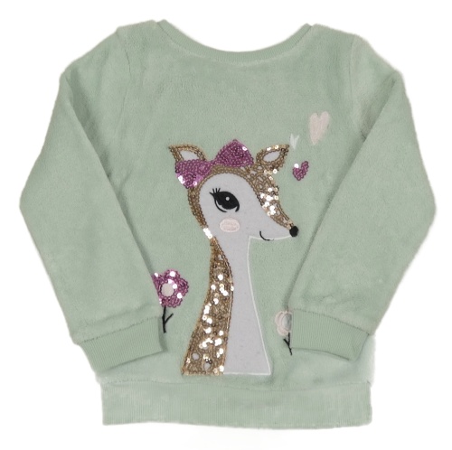 Svetlozelená chlpatá mikina so srnkou z flitrů Kiki&Koko