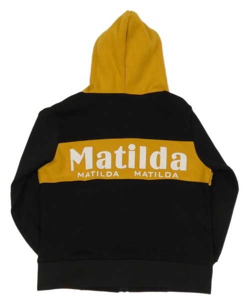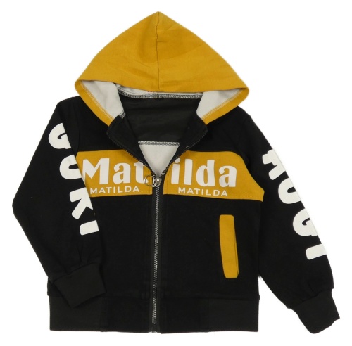 Čierno-okrová prepínaci mikina s nápismi a kapucňou