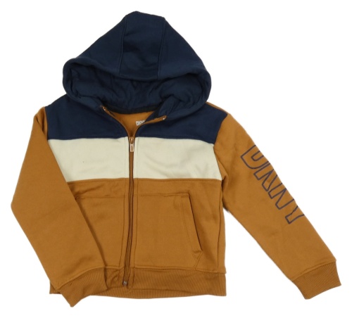 Hnedo-bielo-tmavomodrá tepláková prepínaci mikina s logom a kapucňou DKNY