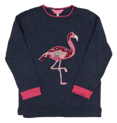 Tmavomodrý sveter s plameňákem s flitrami Joules