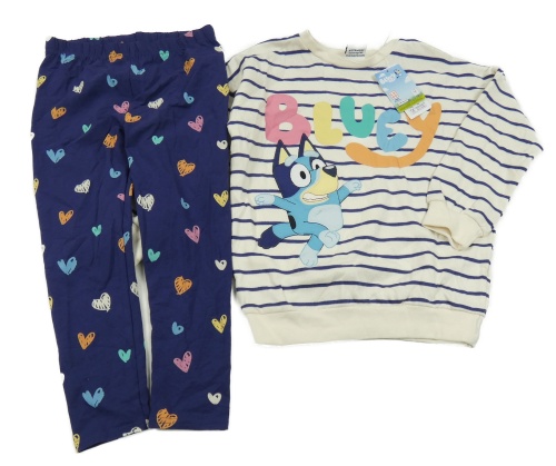 Nové - 2set - Smetanovo-tmavomodrá pruhovaná mikina s Bluey + tmavomodré legíny so srdiečkami George